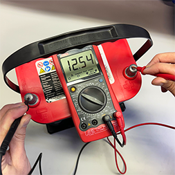 Börja alltid med att mäta batteriets vilospänning. Ett friskt batteri ska ha en vilospänning på 12,7V. Om batteriet visar ett lägre eller högre värde kan det indikera att batteriet är sulfaterat på grund av för lite eller för mycket laddning, eller att det har en kortsluten cell. Observera att även ett batteri som visar 12,7V kan vara skadat, så detta värde är inte en garanti för att batteriet är i gott skick. För mer information, se våra fakta och felsökningstips för batterier. Om batteriet visar ett för lågt värde, försök att ladda upp det eller byt ut det mot ett nytt och se om problemet kvarstår.