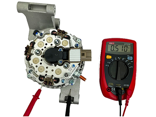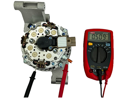 - Anslut det röda mätdonet till generatorns lindningstråd (tre utgångar).